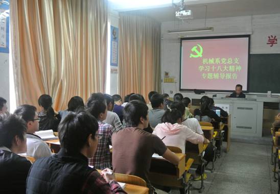 11月16日,机械工程系党总支举办学习党的十八大精神专题辅导报告,该党总支教师党员、学生预备党员、发展对象等50余人听取报告。