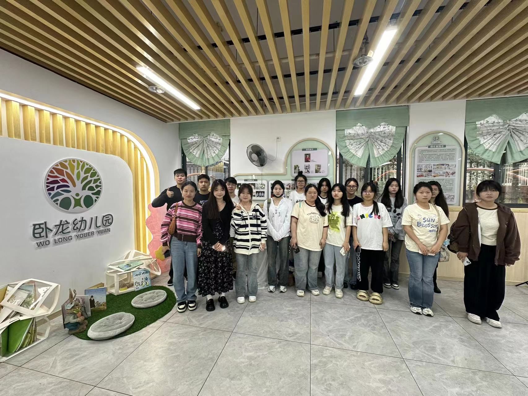 现场教学中,同学们先是在卧龙幼儿园周园长的带领下实地考察了整个幼儿园,了解了园区环境、教学氛围、特色课程等。