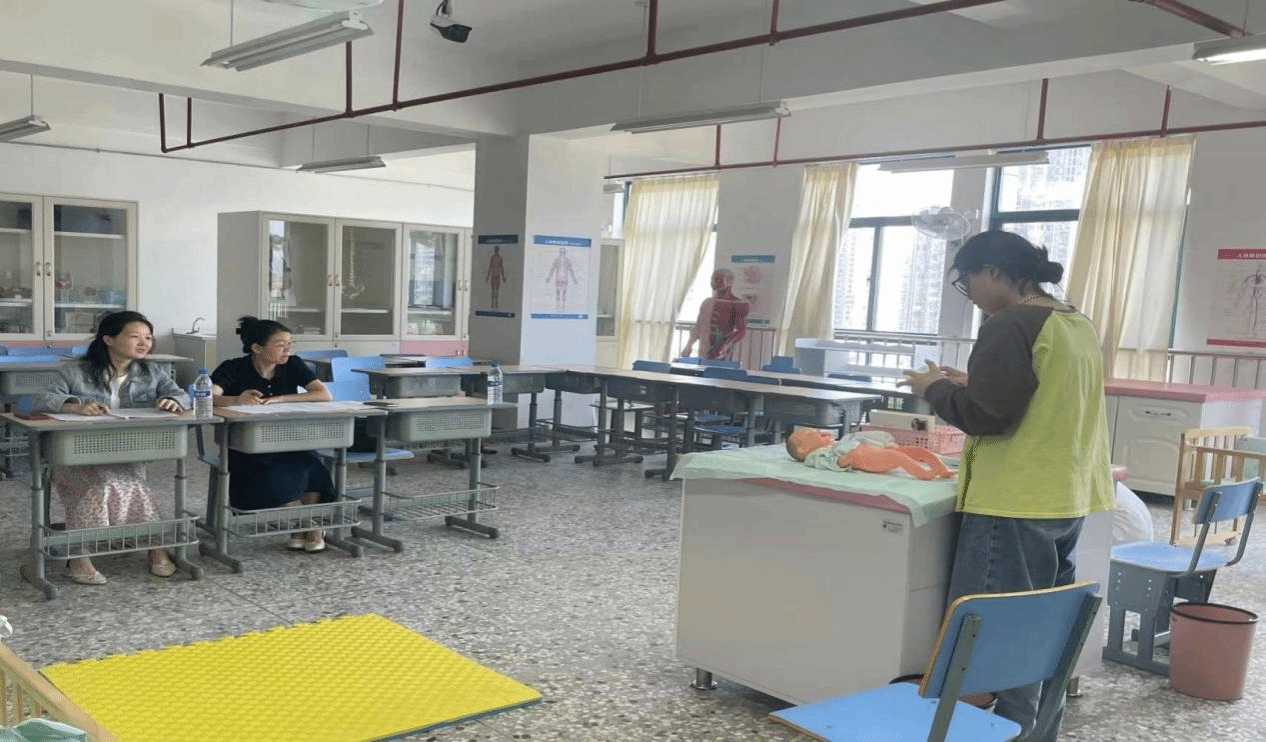 早期教育专业举办了“幼儿照护技能竞赛”,共有 2022 级早期教育专业 85 名学生全体参与,赛项涵盖生活照料、疾病看护、急救等重要内容。幼儿照护的实操竞赛分为生活照料、疾病看护和急救三个赛项,每个赛项都设置了具体的任务和要求,参赛学生需要在规定时间内完成相应的操作。评委们根据学生的操作规范、熟练程度、细节处理等方面进行综合评分。
