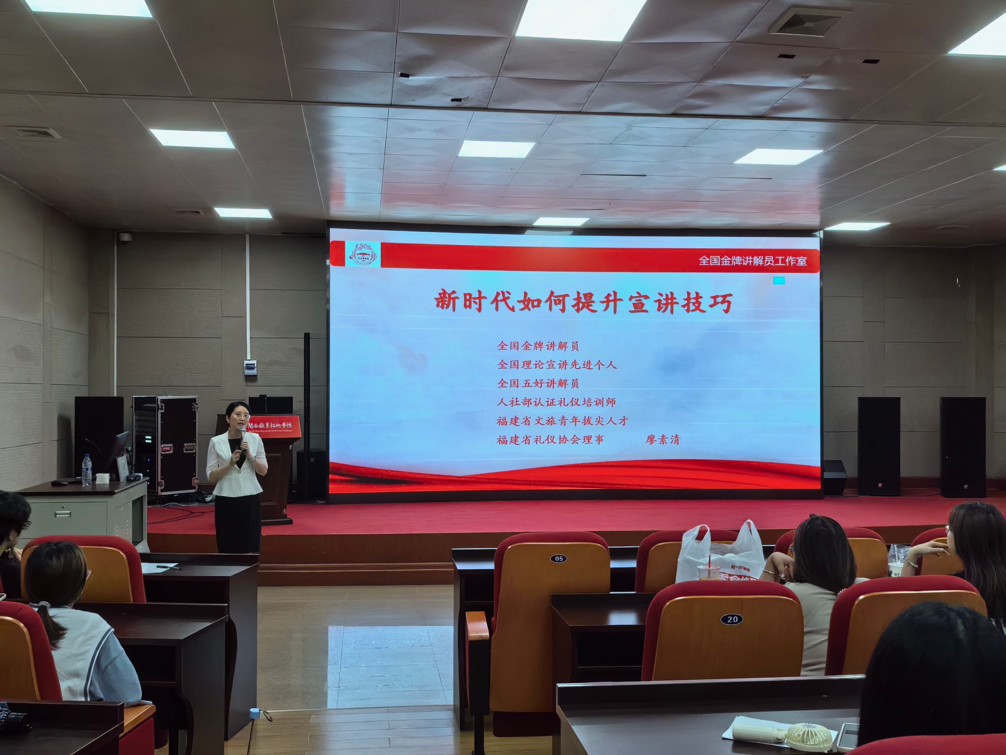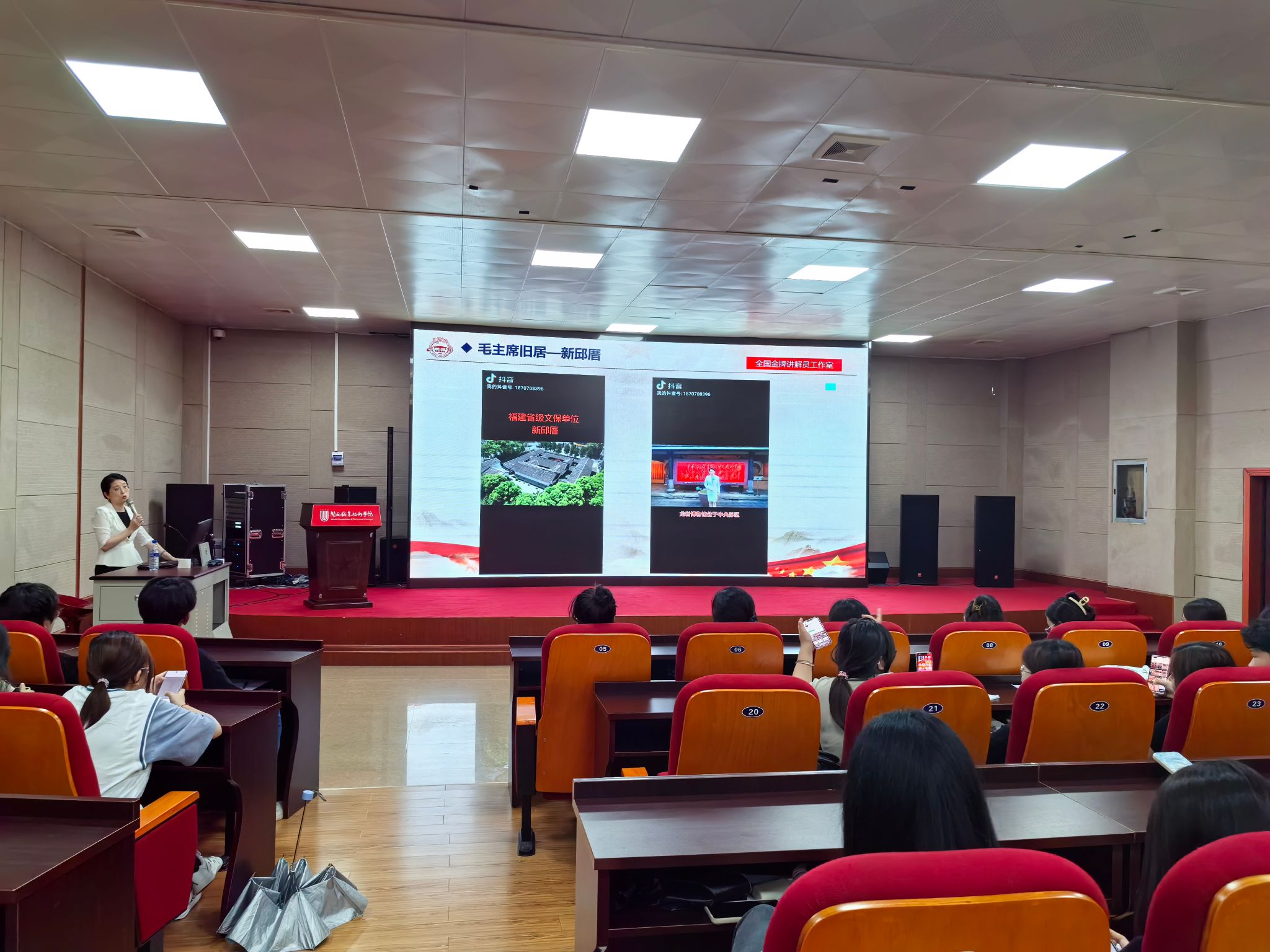 在这个数字媒体蓬勃发展的时代,掌握高效的宣讲技巧成为了连接历史与未来的金钥匙。2024年6月25日,旅游管理专业荣幸邀请到龙岩博物馆馆长、龙岩市新罗区融媒体中心副主任、全国金牌讲解员廖素清女士,为学子们带来一场题为《新时代如何提升宣讲技巧》的讲座。此次讲座旨在提升学生的职业素养,使其在未来旅游新媒体营销领域中游刃有余,适应潮流。
