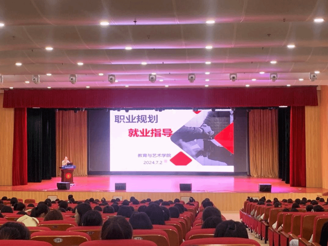 2024年7月2日,教育与艺术学院于大匠堂举办就业指导专题讲座,本次讲座由党委副书记黄翠宝老师主持,22级全体学生以及23级五年专学生参加,特别邀请福建教师考试高级咨询师张雅惠为同学们进行演讲。