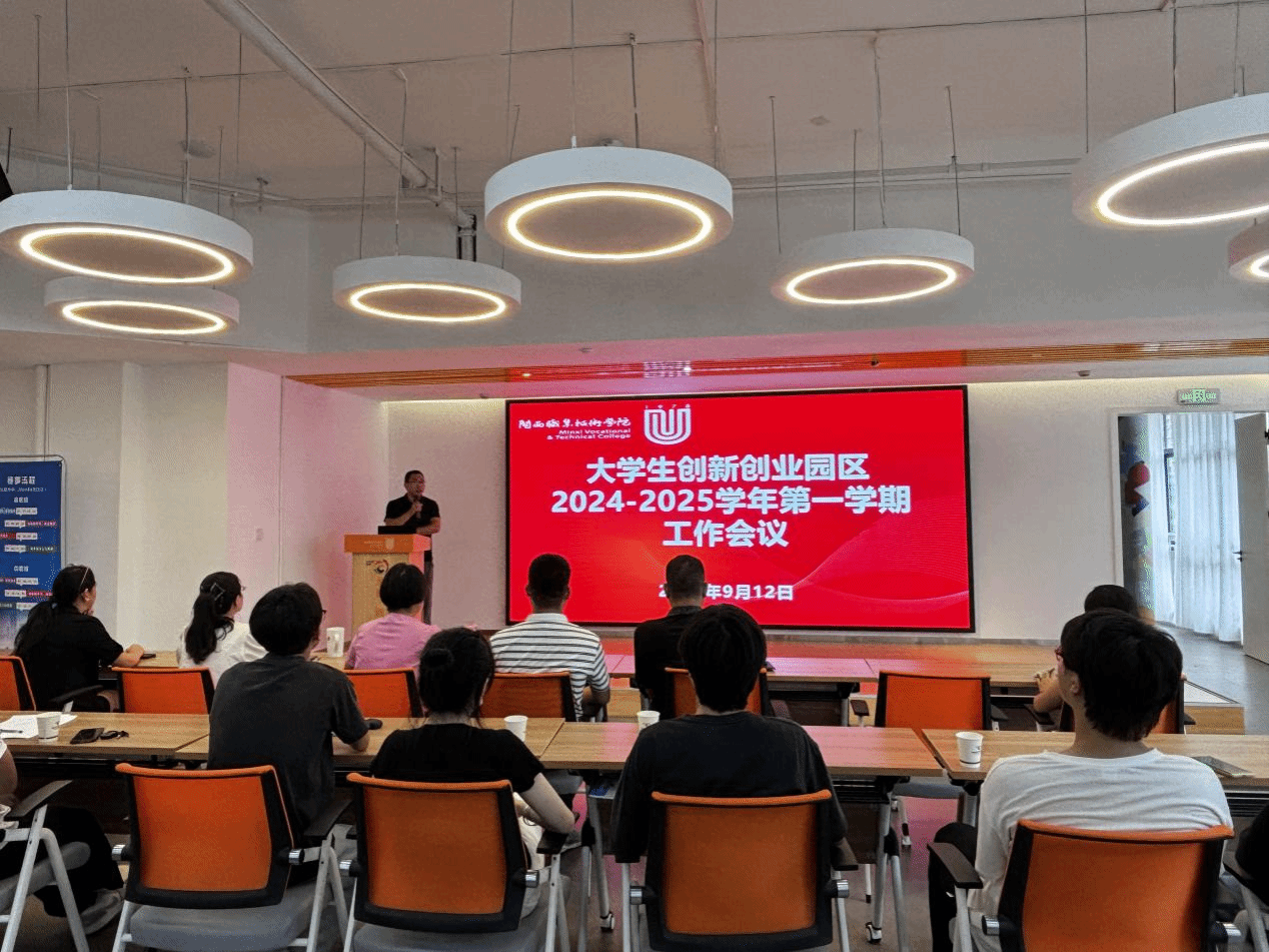 2024年9月12日下午,创新创业学院召开了大学生创新创业园区2024-2025学年第一学期工作会议,创新创业学院全体老师、两批入驻项目的负责人、指导老师及校青年创业服务站主席团成员参加会议。