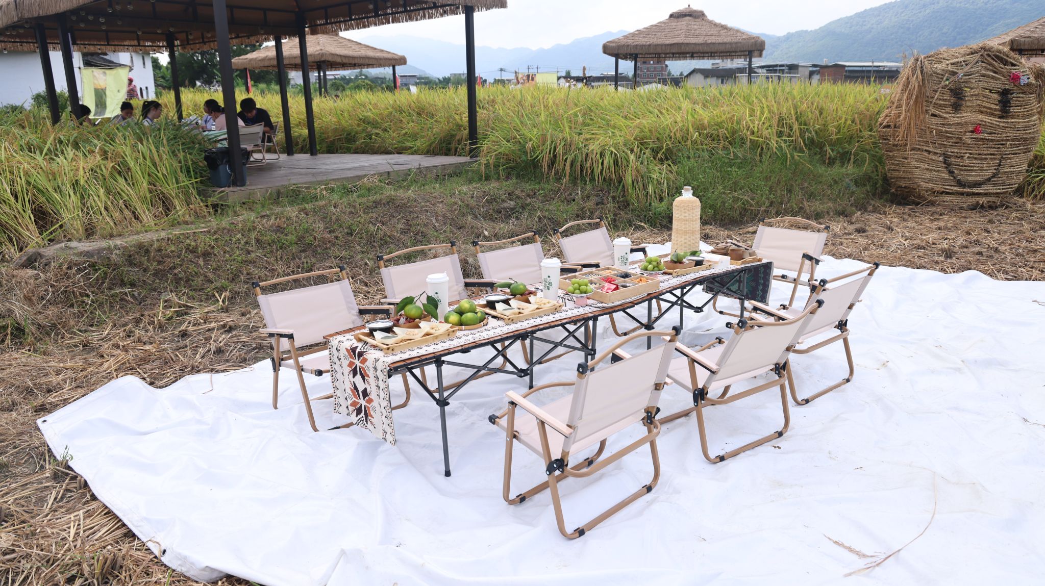 文旅学子们分成多个小组,有在整个园区进行交通疏导的,有在主席台帮忙迎宾和维持现场秩序的,还有深入田间地头,帮助农民收割稻谷,体验农耕文化的魅力。此外,旅游管理和酒店管理与数字化运营专业的学生还在活动现场设立了调酒和糕点制作展示区,向游客们展现了文化与旅游学院学子们的专业风采。