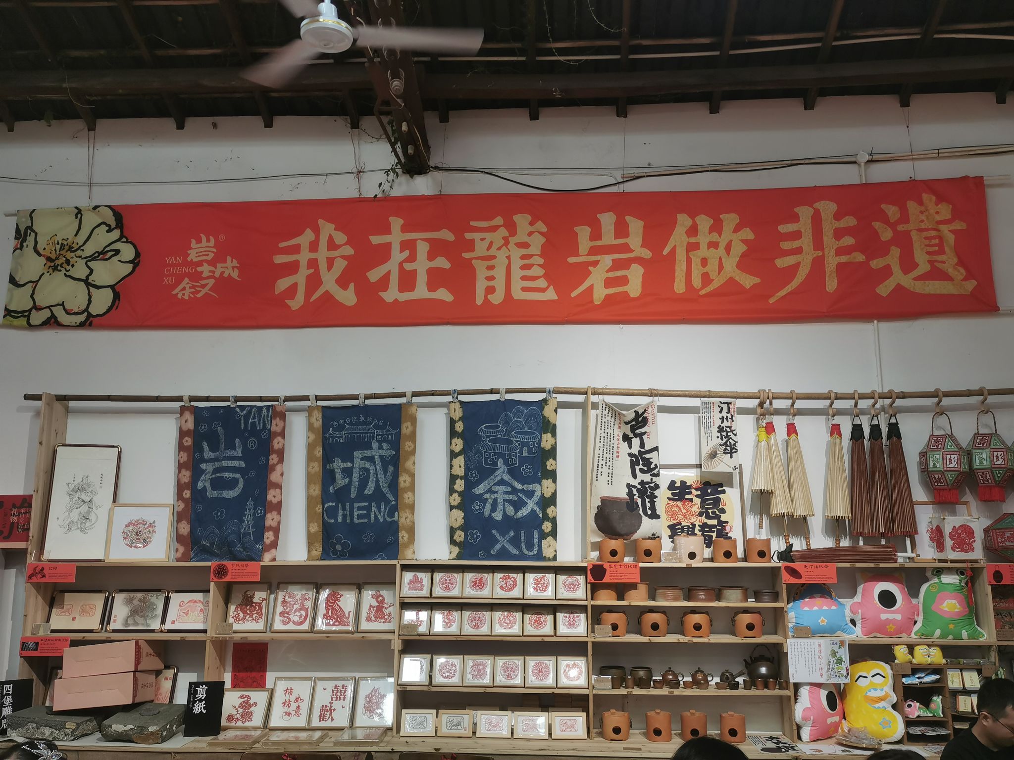 “岩城敘在地风物馆”作为闽西地区文化特色的重要展示窗口,陈列着琳琅满目的闽西特产,让参观者能够近距离接触和了解闽西的历史文化。风物馆还特别设立了非物质文化遗产展区,展示了包括龙岩剪纸、采茶灯在内的多种艺术形式,不仅是闽西深厚文化底蕴的呈现,更是对当地非物质文化遗产的一种活态保护与传承。