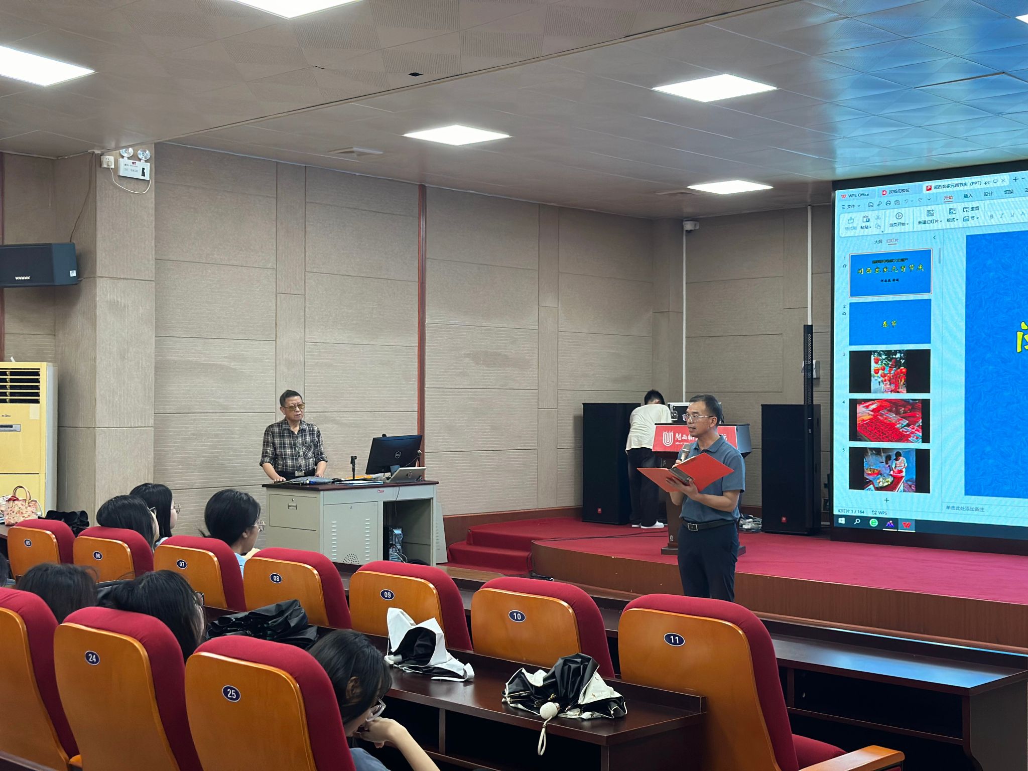 在本次讲座中,何志溪先生详细介绍了“闽西客家元宵节庆”的历史背景、文化内涵及其独特的庆祝方式,特别是其作为国家级非物质文化遗产项目的珍贵价值。通过丰富的视觉材料,他带领在场师生一同探索了这一传统节日的魅力所在,分享了近年来政府和社会各界为保护和传承这一文化遗产所作出的努力和取得的成果。
