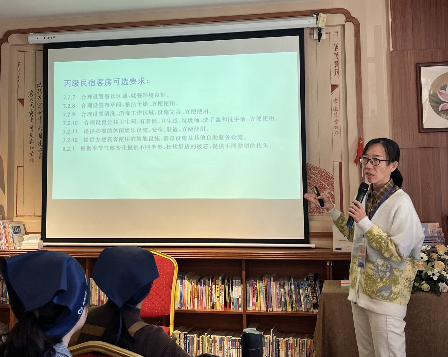 在本次培训中,我院骨干教师团队发挥专长,带来系列精彩实用课程。李文芳老师主讲的《民宿客房服务》课程紧扣民宿日常运营核心环节,从客房清洁的精细步骤、物品摆放规范,到客户入住期间的贴心服务细节,以深入浅出的讲解搭配实际案例,让学员系统掌握客房服务要义,助力提升住客居住体验。