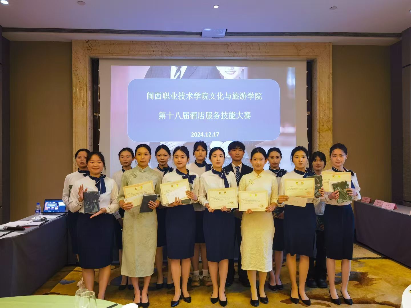 伴随颁奖典礼的进行,第十八届酒店服务技能大赛画上了圆满的句号。参赛选手们不仅在技能上得到了锻炼和提升,更在实践中加深了对酒店服务行业的认识。通过竞赛的形式,能够有效地激发学生的学习热情,促进教学内容和方法的改革,进而提高教育质量,为行业输送更多高素质的人才。
