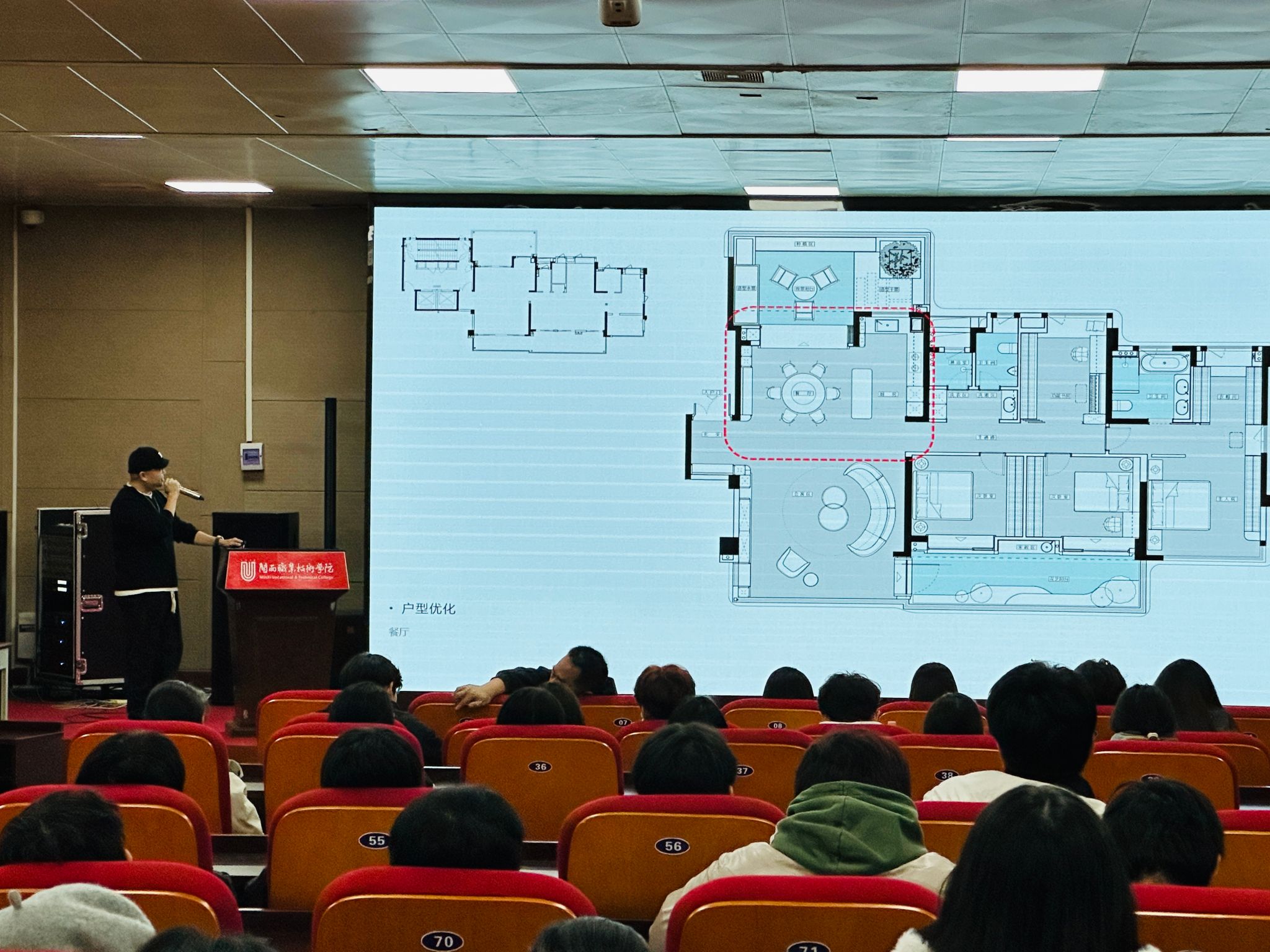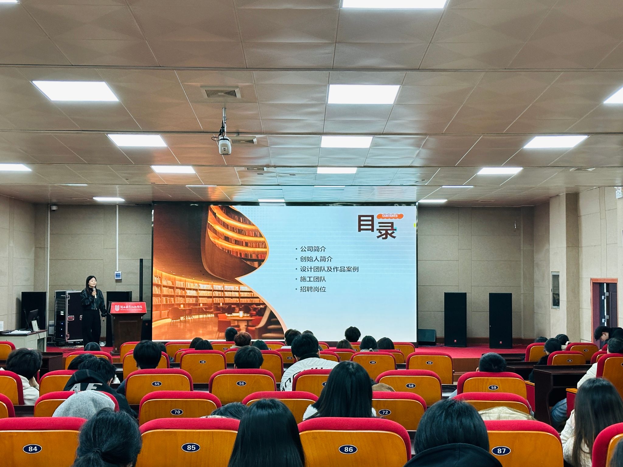 首先,建筑室内设计专业主任详细介绍了本次活动的目的与流程,强调了建筑室内设计领域广阔的发展前景。随后,龙岩市四维家装饰设计工程有限公司、福建龙岩万辉建设工程有限公司、龙岩锦程世家装饰设计有限公司、龙岩市石川建筑装饰有限公司等企业代表依次上台进行宣讲,通过精彩的 PPT 演示、视频、图片等多种形式讲解,全方位展示了各自公司的企业文化、核心业务、岗位需求以及过往的经典设计项目。