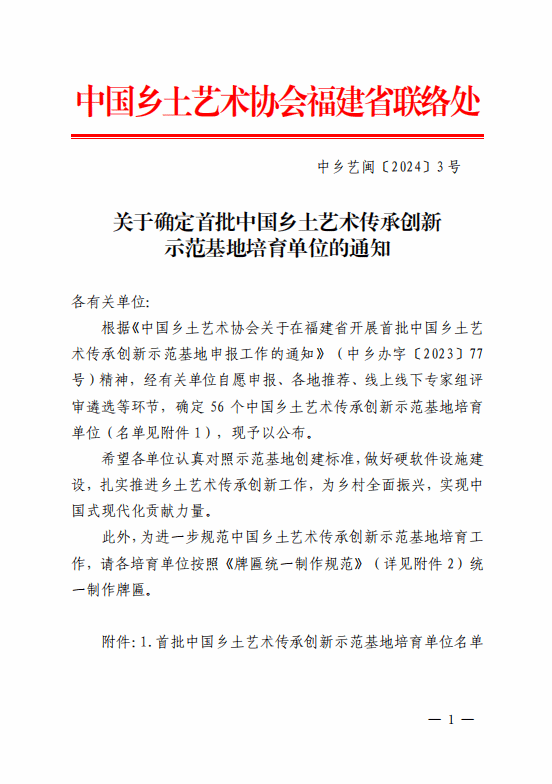 近日,中国乡土艺术协会福建省联络处印发了《关于确定首批中国乡土艺术传承创新示范基地培育单位的通知》,MG冰球突破官网入选。此次项目申报,由文化与旅游学院牵头,申报剪纸、扎染、农民画三个与设计相关的艺种。接下来,文化与旅游学院将以此次入选为契机,进一步深化与地方政府、行业协会以及相关企业的合作,共同探索乡土艺术传承与创新发展的新路径。