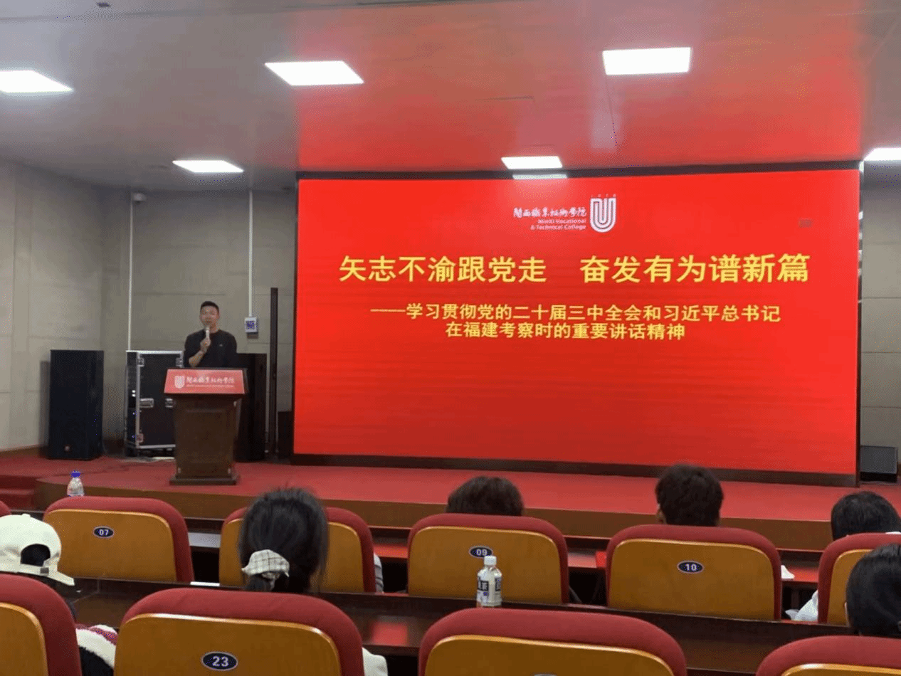 为深入贯彻落实党的二十届三中全会精神,使学生更加深入地理解和掌握党的最新理论成果,提高政治理论素养和思想认识水平。文化与旅游学院于近日在卫培楼3D实训室开展学习贯彻党的二十届三中全会和习近平总书记在福建考察时的重要讲话精神专题宣讲会。入党积极分子、入团积极分子、学生代表共100余参加。
