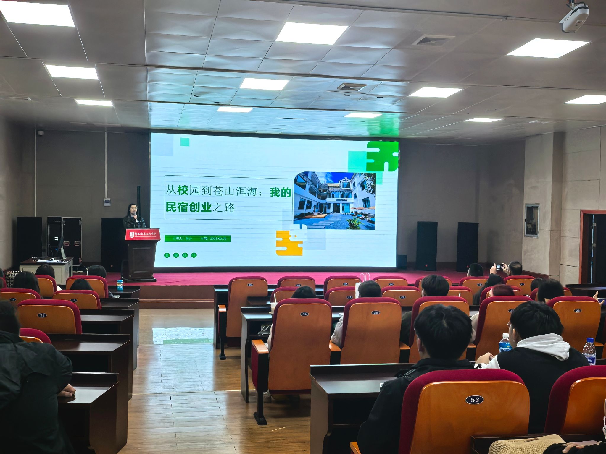 分享会上,张云同学结合自己在大理开办民宿的真实经历,和学弟学妹们分享了自己的创业历程。同时,她还深入讲解了民宿运营中需要掌握的专业知识,从游客心理、特色服务、新媒体运营等方面,让同学们对民宿行业有了更全面、更深入的认识。