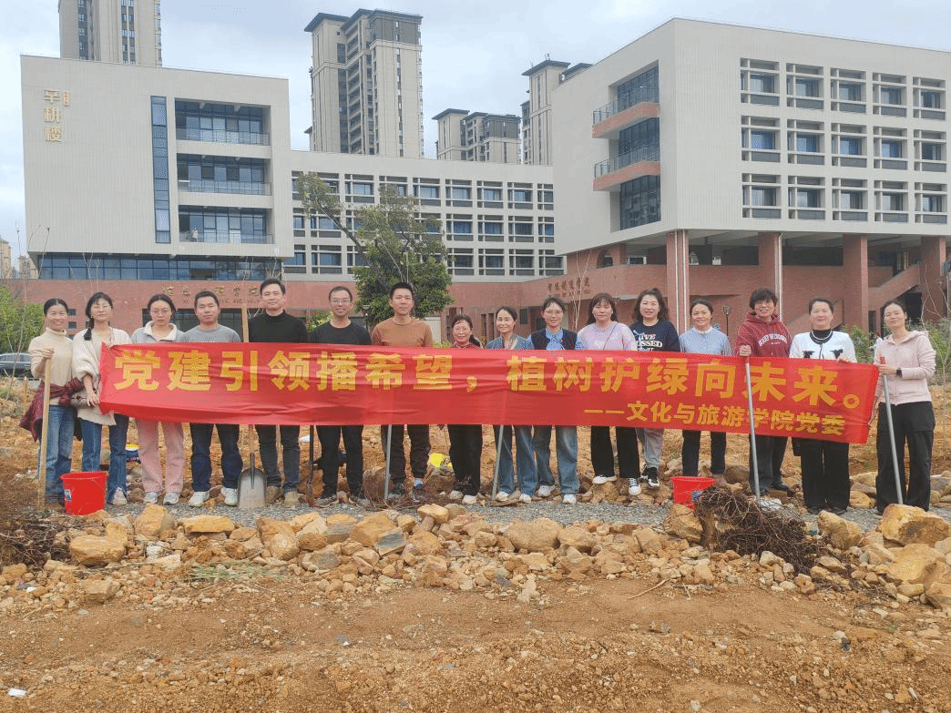 为深入贯彻落实习近平生态文明思想,认真贯彻落实关于生态文明建设的要求,3月11日下午,文化与旅游学院党委组织全院党员开展以“党建引领播希望,植树护绿向未来”为题的植树节主题教育。