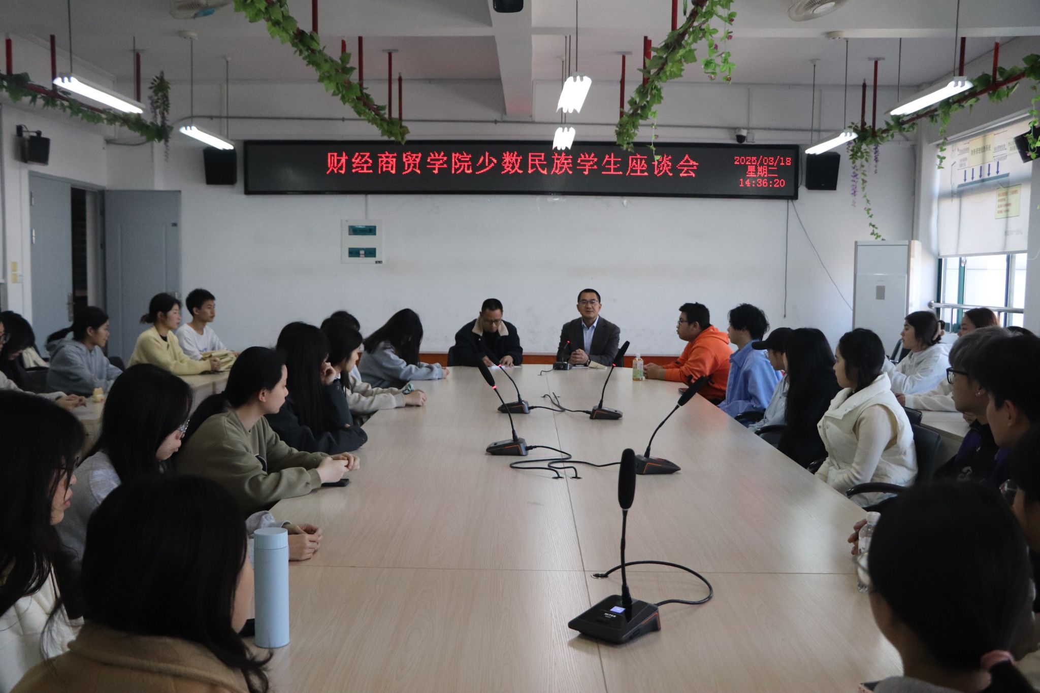 为深入贯彻落实习近平总书记关于加强和改进民族工作的重要思想,引导师生不断铸牢中华民族共同体意识,财经商贸学院开展了“铸牢中华民族共同体意识主题月”活动。为配合该主题月活动,3月18日下午,财经商贸学院在万源楼召开在校少数民族学生座谈会,2023级、2024级共30余名少数民族学生参加。
