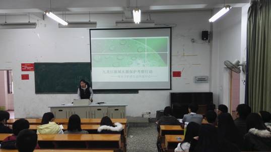 上午,环境工程系部分教师、现任系两委干部、干事,2015级环保1、2班全体学生,以及热爱环保的其他人员共一百多名师生,参加了由厦门绿水守护者总干事陈彦君作的讲座----《九龙江流域水源保护考察行动》。陈彦君向在场的师生们介绍了九龙江流域的现状,阐述了保护九龙江流域的理念,推荐了实施九龙江流域水体保护的方法和步骤,希望同学们立即行动起来,一起保护九龙江。