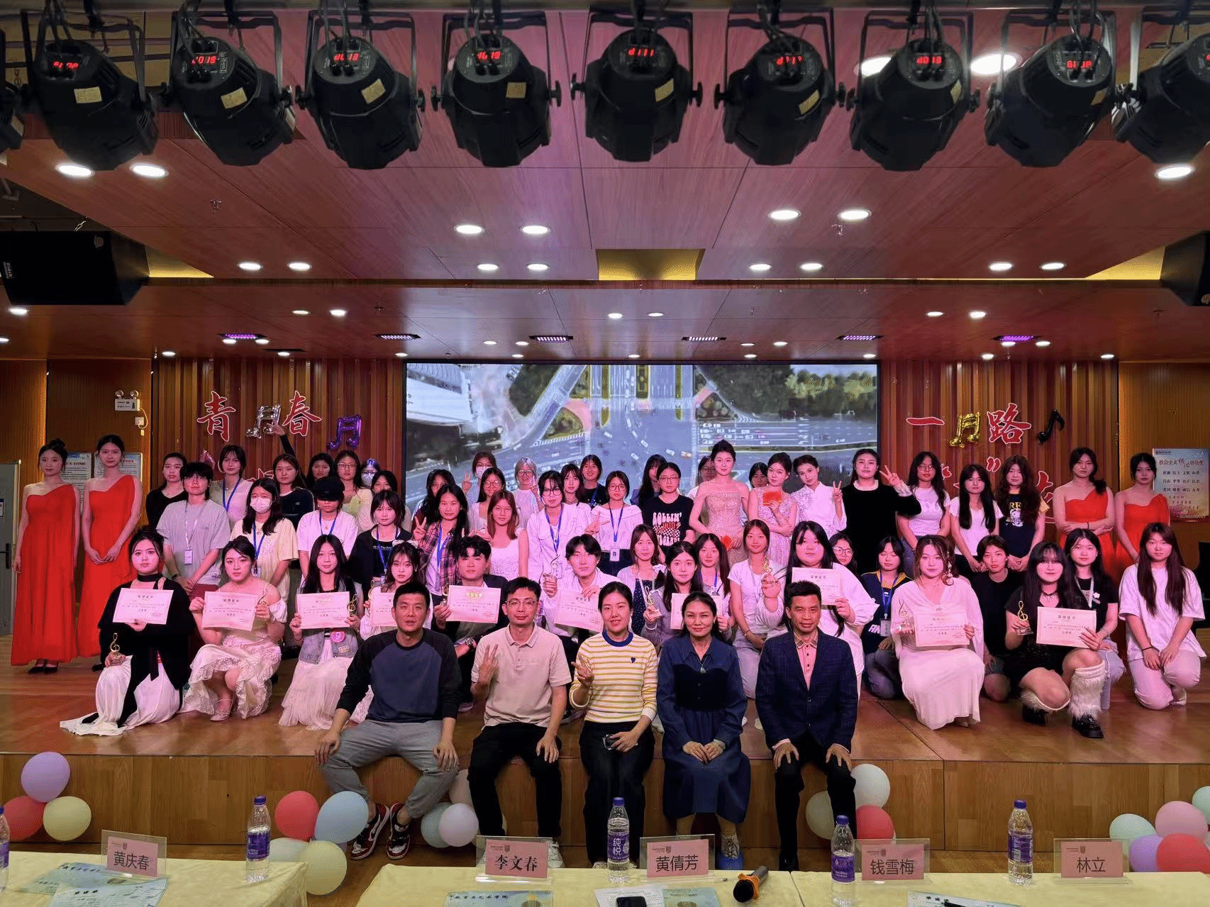 2025年4月11日晚,教育与艺术学院于岩声楼十楼举办红色文化品牌活动——“青春‘唱’响,一路‘声’花”十佳歌手大赛决赛。教育与艺术学院院长李文春、党委副书记黄翠宝、副院长黄倩芳、校团委钱雪梅老师及学院的部分师生参加活动,现场评委为黄倩芳、钱雪梅和林立三位老师。