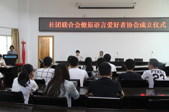 协会负责人在会上宣读协会章程,宣布社团联合会燎原语言爱好者协会正式成立。