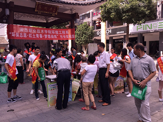 7月10日上午,环境工程系党总支负责人、系团委老师及大学生40多人赴上杭县城瓦子街,与紫金矿业集团东南矿产地质勘查分公司的共青团员一起开展社会实践活动。本次活动以“环保志愿·红土青春·梦想扬帆”为主题。