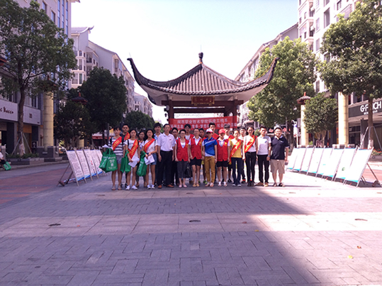 整个活动以“社会环保宣传”为主,结合学院招生宣传工作。在瓦子街文庙前搭建了大本营,挂起“环保志愿·红土青春·梦想扬帆”和“呵护水源地,关注饮水安全”两条横幅,左右两边共树起13块宣传展板,在中间的桌子上堆满了装满相关宣传资料的宣传袋。前来参观并咨询的群众一下蜂拥而来,师生们发放宣传材料、接授咨询、指导环保问卷调查等,忙得不亦远乎!部分同学以瓦子街为主干结合周边街道对店面和行人进行宣传,使瓦子街变得更加热闹。