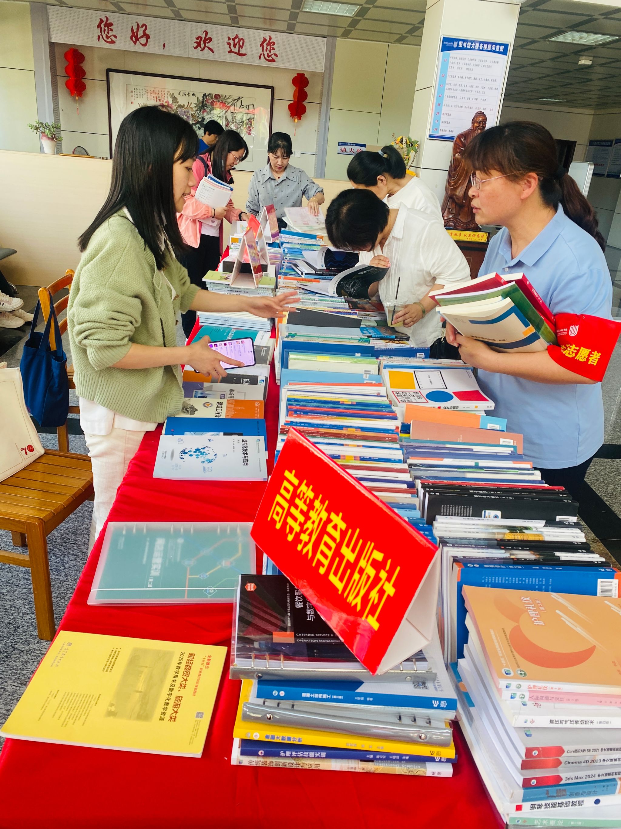 4月29日,校图书馆联合福建新华发行(集团)有限责任公司龙岩分公司及国内多家知名出版社在图书馆举办了2025年高职教材巡展与图书特惠展销活动。活动得到了MG冰球各级领导的鼎力支持,500多名教师参加了此次教材展,其中三百多名教师申领教材样书四百多册。图书特惠展销区开展了7.5 折优惠展销,活动特别设置了“你选书,我买单”环节。