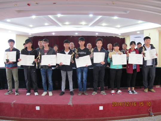 12月16日下午,电气工程系在学术报告厅举行2014年学生表彰大会,表彰在2014年TI杯福建省大学生电子设计竞赛、暑期学生社会实践活动、学院第11届田径运动会、班班篮球赛和“和谐宿舍”立项活动中取得优异成绩的先进集体和优秀个人。系党政负责人、系各专业主任负责人、电子设计竞赛指导老师和全系学生出席会议。