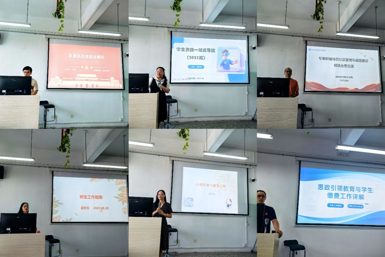 本次培训内容丰富、针对性强,涵盖多个关键工作领域。蓝冬玉老师无私分享了新生工作、心理咨询与辅导工作的心得体会与具体做法;章琳丽老师详细讲解了学生奖助贷工作的流程及注意事项;卢沂老师结合自身工作实际介绍了创新创业、劳动教育和团学工作要点;俞如楠老师介绍了学生社区管理和诚信财院建设工作的主要特点及要求,并就学生宿舍安排、卫生、矛盾处理等方面分享了成功经验;张继东老师认真讲授了思政引领教育及学生缴费工作的主要内容和具体要求;邓连文副书记介绍了思政组长的职责及其与小组组员的关系。
