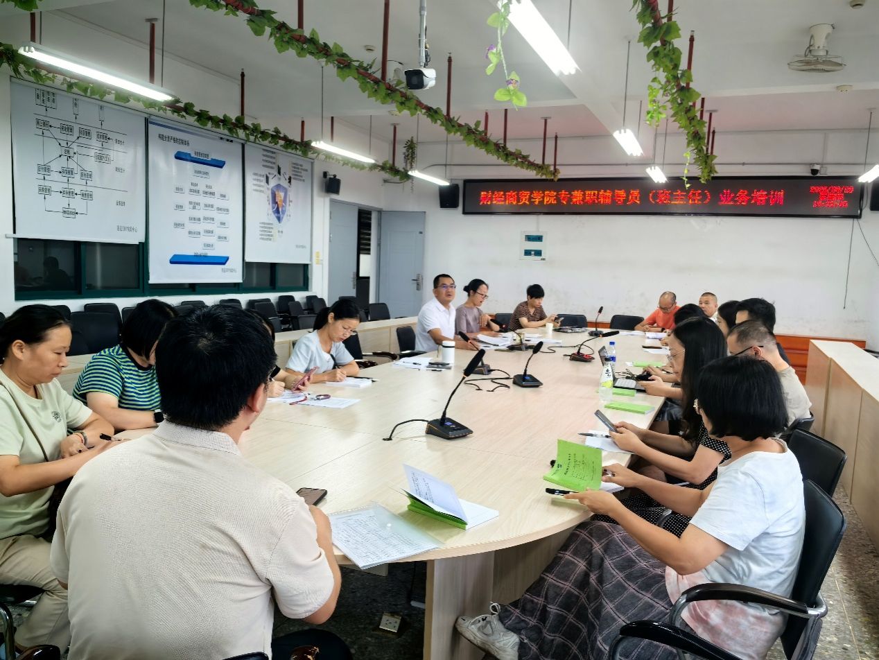 为进一步提升辅导员(班主任)的业务工作水平,财经商贸学院于2025年8月28日在万源楼811会议室举办了为期一天的辅导员(班主任)业务培训班,全体辅导员(班主任)参加本次培训。