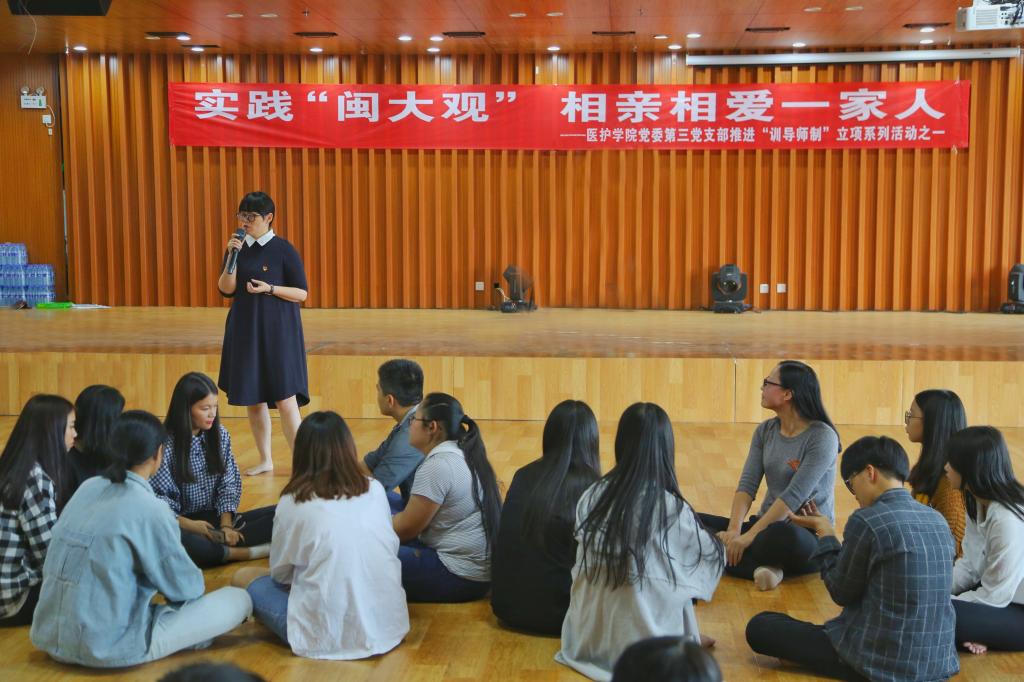10月26日下午,医护学院第三支部以“实践闽大观,相亲相爱一家人”为主题,在教学综合大楼10楼举办落实“训导师制”团体辅导活动。该支部党员训导师及其所带学生参加了此次活动。