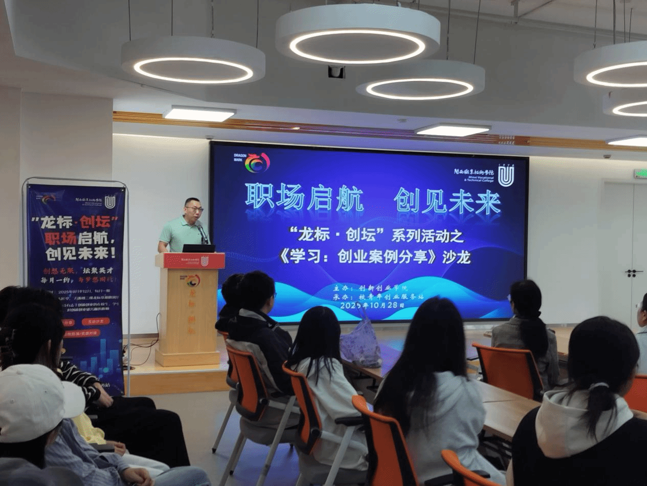 10月28日,由创新创业学院举办的“职场启航,创见未来——龙标·创坛”系列活动之《学习:创业案例分享》沙龙暨创新创业导师进校园活动,在万源楼三楼龙标双创孵化基地路演厅顺利举行。活动旨在深化创新创业教育实践,赋能青年学子成长,吸引了园区项目团队、校青创服务站成员及对创新创业感兴趣的师生积极参与。