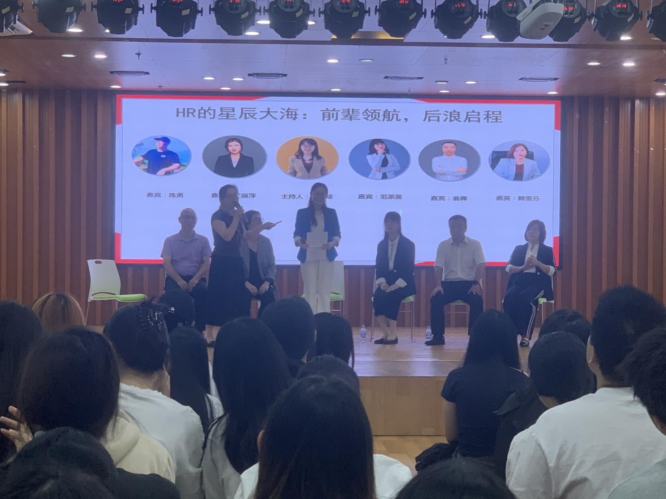座谈会上,六位HR专家结合自身多年的招聘与管理经验,围绕“如何培养关键职业能力”“职场人际关系处理”“面试技巧与礼仪”以及“时间管理的方法”等核心话题,为同学们带来了实用而精彩的分享。专家指出,除了专业技能,企业更看重学生的综合素质,如解决问题的能力、团队协作精神和持续学习的态度;在人际关系与沟通方面,专家们通过生动的职场案例,分享了如何与同事、领导建立良好关系的技巧;针对职场快节奏的特点,专家们分享了高效管理时间的方法,帮助同学们提前适应职场节奏。在座谈会的最后一个阶段,每位专家用一句话寄语同学,鼓励他们带着勇敢而坚定的心迈出求职第一步。整场座谈会气氛活跃,掌声不断。许多同学表示,通过此次座谈会,不仅对职场有了更清晰的认识,也增强了求职的信心。