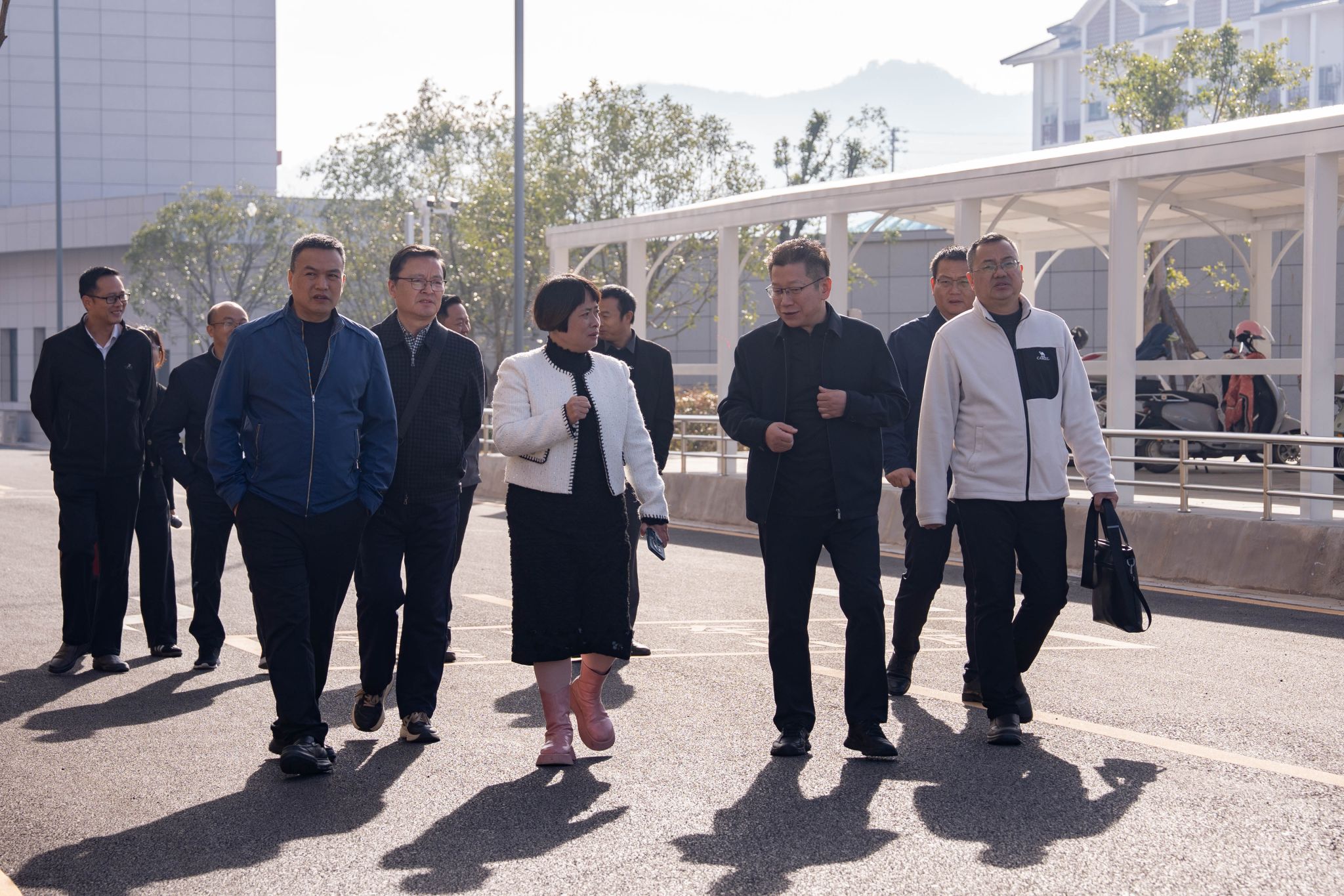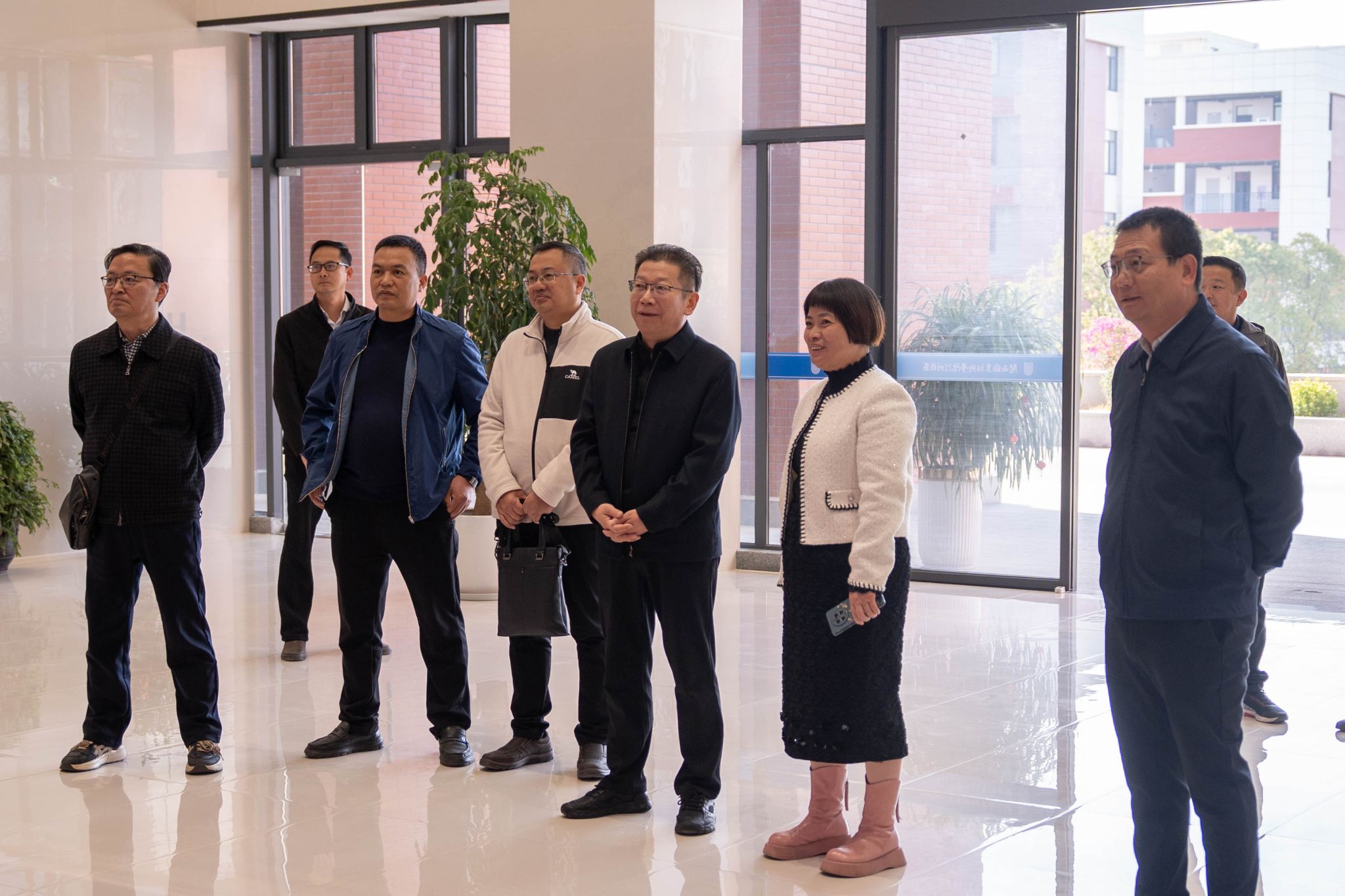 带着对职业教育创新实践的探索欲,考察团的足迹遍布汀州校区的实训基地、核心教学场馆与校园文化地标。实训车间内,自动化设备高效运转,师生们专注实操的身影,让考察团真切感受到校区“以技育人”的扎实功底;校园文化长廊中,客家文化元素与红色教育展区相映成趣,独特的育人氛围引得成员们频频驻足、细致询问。汀州校区管委会书记钟亮梅及班子成员全程陪同,沿途娓娓道来——从校区规划建设的初心,到专业设置与地方产业的适配逻辑,将办学理念与实践成果尽数呈现。