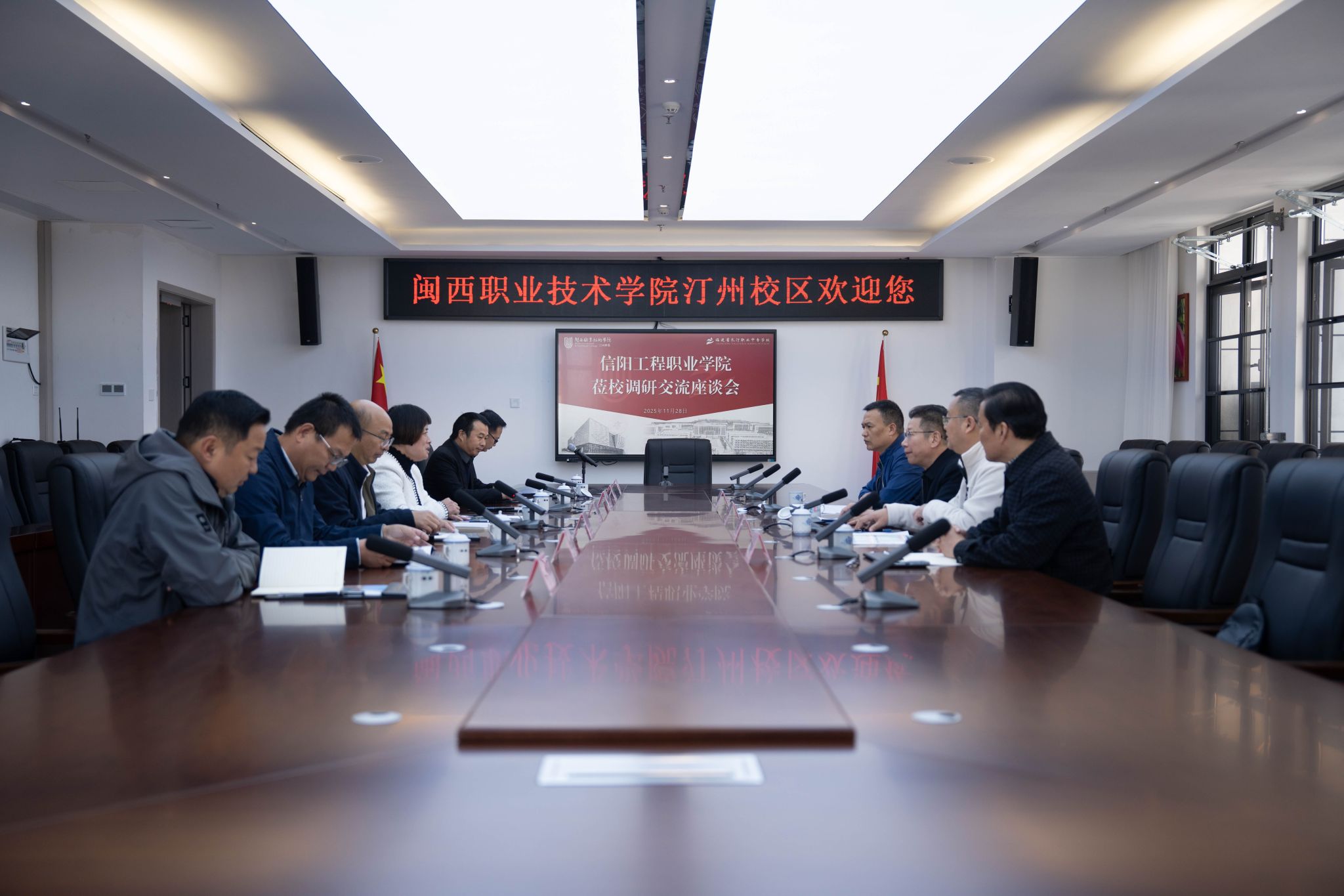 此次考察团阵容精干,由固始县二级调研员、县政协副主席、信阳工程职业学院党委副书记李涛带队,固始县教育体育局党组书记、局长许士科,信阳工程职业学院理事长黄红,以及该校党委委员、学院建设指挥部办公室主任张卫兵同行。作为扎根 “唐人故里、闽台祖地” 河南固始县的职教骨干,信阳工程职业学院近年在特色发展之路上稳步前行。此次跨越千里赴闽,既是对MG冰球办学成果的认可,更承载着交流互鉴、共谋发展的深厚热忱。