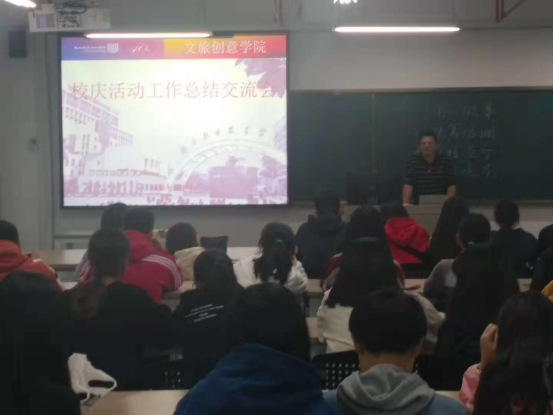 11月20日,文旅创意学院在实训楼1112召开校庆工作总结交流会议。学生两委干部,各工作小组负责人,各班班长、团支书、学习委员,以及辅导员等共110多名师生参加。林茂才作总结讲话,石颖主持会议。