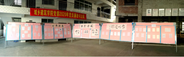 近日,城乡建筑学院党委2020年党员廉政书法展在建筑技术实训基地举行。本次共展出师生党员软笔、硬笔廉政书法作品共57幅。