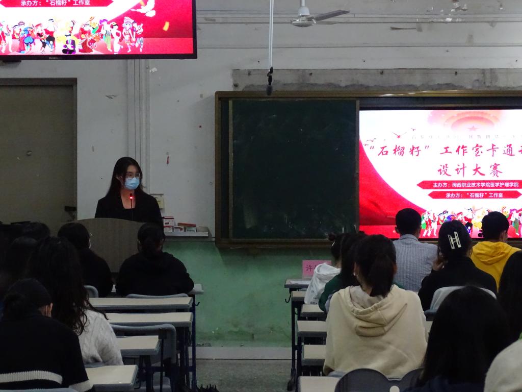 11月25日晚上,医学护理学院“石榴籽”训导师工作室成功举办“石榴籽一家亲”主题卡通形象创意设计大赛。训导师工作室成员陈国良等老师,通过前期深入学生,对20个进入决赛的优秀作品的设计思路、设计理念和作品意义,以及进一步可开发的文创产品进行创新创意指导。
