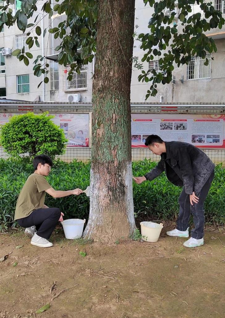 为落实《MG冰球突破官网学生劳动教育课程实施方案》,推动劳动教育与职业教育深度融合。文旅学院风景园林设计专业以此为契机,在《园林植物栽培与养护》课程中主动与学校物业对接,开展“树木涂白”校园养护劳动教育实践项目,丰富专业的劳动内涵。