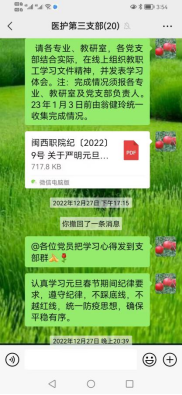 为深入贯彻党的二十大要求,锲而不舍落实中央八项规定精神,持续纠正“四风”,进一步增强教职工在重要节点的廉洁自律意识,营造风清气正的节日氛围,近日,医学护理学院组织全体教职工通过线上学习的方式开展节前廉洁警示教育活动。