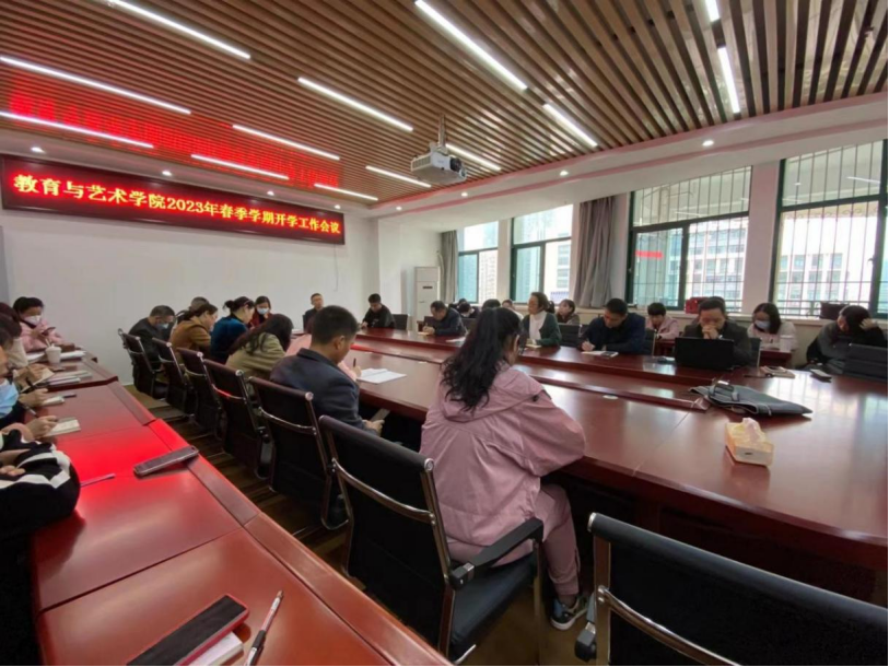 教育与艺术学院召开本次会议贯彻落实学校工作部署和春季学期的相关工作,全院师生将以此为起点,在2023年踔厉奋发,勇毅前行,努力建设“予生最好学校”。
