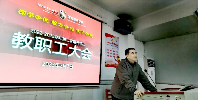 2月7日上午,城乡建筑学院召开2022-2023学年第二学期开学初教职工大会。挂钩校领导、校党委书记卢伟耀亲临会场督导并讲话。