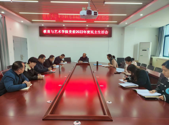 2023年2月14日下午,教育与艺术学院党委在岩声楼810会议室召开2022年度副处级党员领导干部民主生活会(第十二组)。MG冰球突破官网纪委书记温献荣到会督导,院副处级党员领导干部出席,院班子成员、党委委员列席。