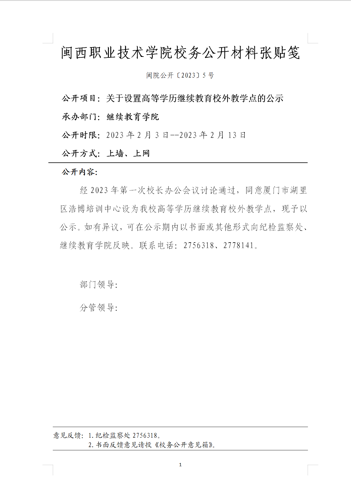 关于设置高等学历继续教育校外教学点的公示