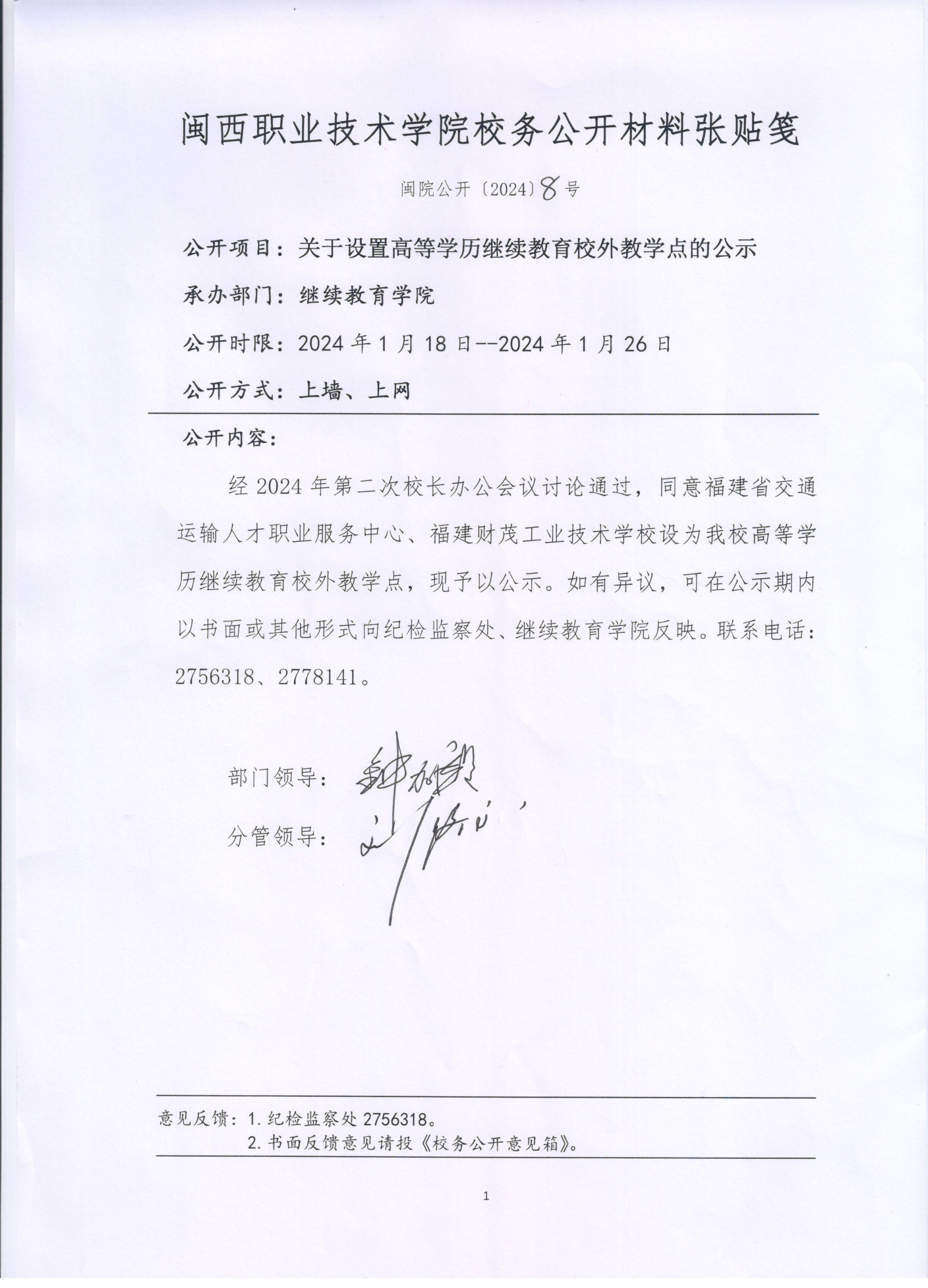 关于设置高等学历继续教育校外教学点的公示