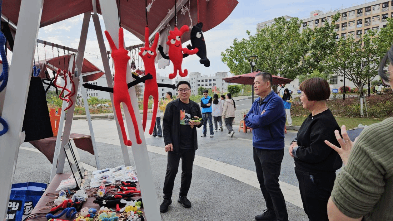 校内外摊主们互相交流、学习借鉴。通过本次“练摊”,同学们不仅开拓了文化视野、文创思维,完整模拟了商业项目的流程,锻炼了品牌IP打造、市场营销技巧、项目运营能力,增强了创业的信心和勇气。