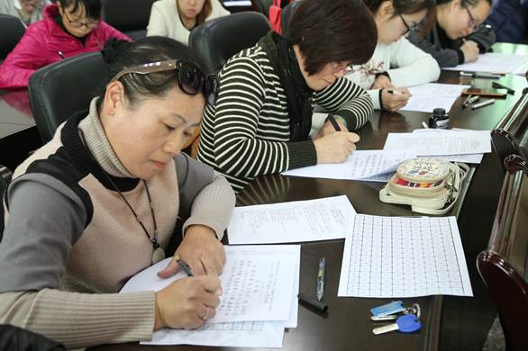 为深入学习贯彻落实党的十九大精神,实施廉政文化精品工程,传承中华民族经典文化,推动廉政文化进校园,27日下午,校纪委主办、工会承办的第二届“品经典家训,传清廉家风”教职工廉政文化硬笔书法比赛在办公楼二楼会议室举行。各工会小组选送的近60名参赛选手参加此次比赛。