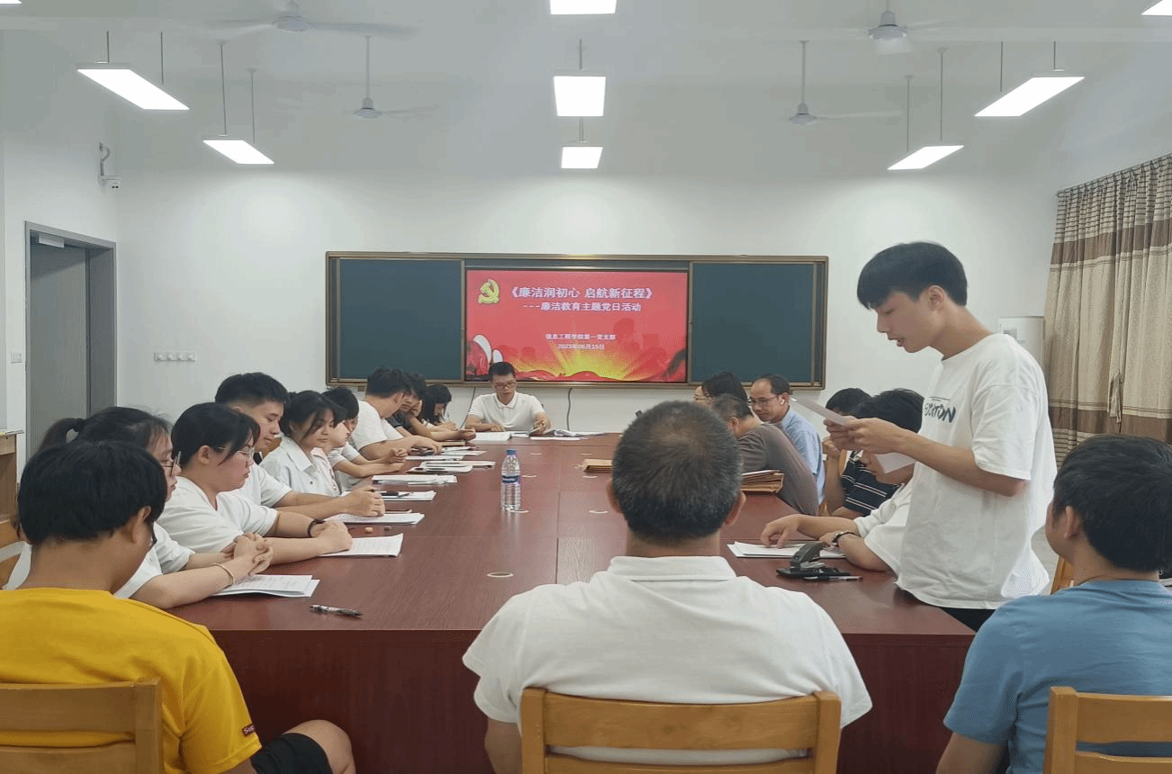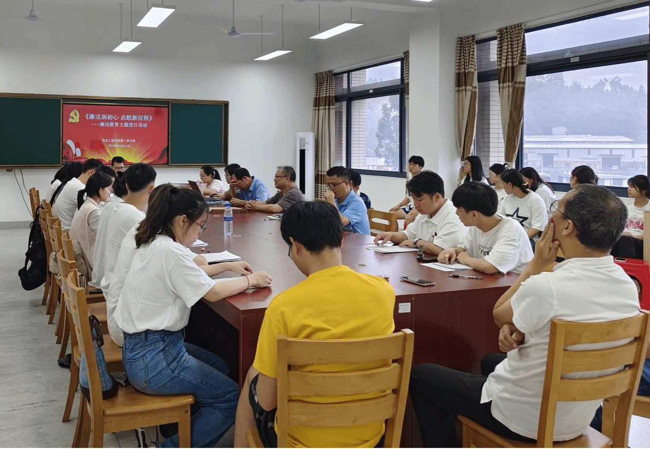 在2023届毕业生离校之际,信息工程学院第一党支部于2023年6月15日开展主题为“廉洁润初心 启航新征程”的党日活动,旨在加强支部党员廉洁教育,增强拒腐防变能力和廉洁从业意识,勉励毕业生党员扣好廉洁从业的“第一粒扣子”。支部教师党员及学生党员参加了本次主题党日活动。