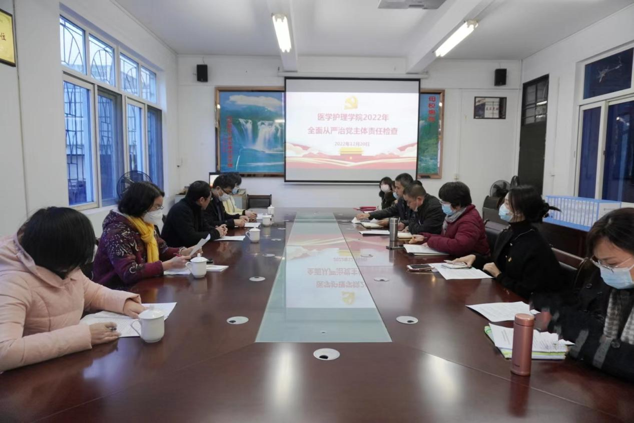 为全面压实压紧从严治党主体责任,12月20日上午,MG冰球2022年度全面从严治党主体责任落实情况检查组到医学护理学院进行检查指导工作。