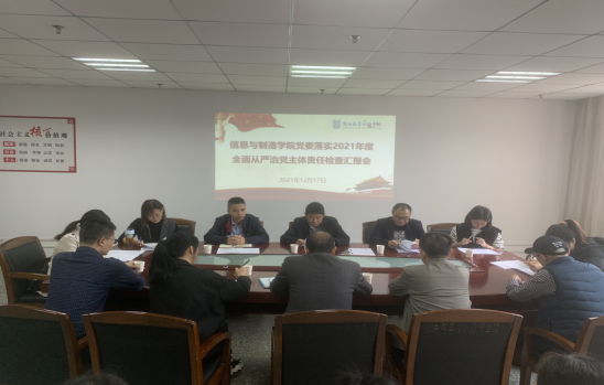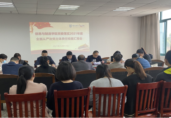 信息与制造学院党委负责人向检查组汇报了信息与制造学院落实2021年度全面从严治党主体责任情况、落实意识形态工作责任制情况。