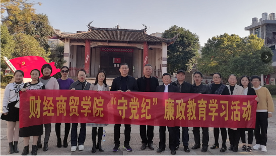 根据闽西职院纪〔2021〕15号文件精神,12月7日,财经商贸学院党委委员、各支部支委、秘书前往连城新泉整训旧址开展"清风财院"主题党日活动。