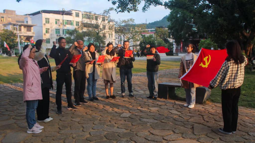 在新泉整训纪念馆,三个党支部分别开展“跟党走”感恩奋进主题党日活动,组织党员学习党章、集体过政治生日、重温入党誓词,增强党员的身份意识、责任意识、宗旨意识、纪律意识,激励党员不忘初心跟党走,感恩奋进担使命。