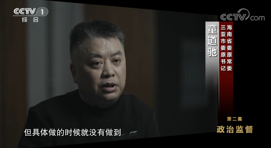童道驰(海南省委原常委、三亚市委原书记):自己去(三亚任职)之前也知道环保是个重大的问题,要好好去整治的,但具体做的时候就没有做到,这个是我自己深刻的教训,做到“两个维护”这个方面,真的是没有具体去执行。