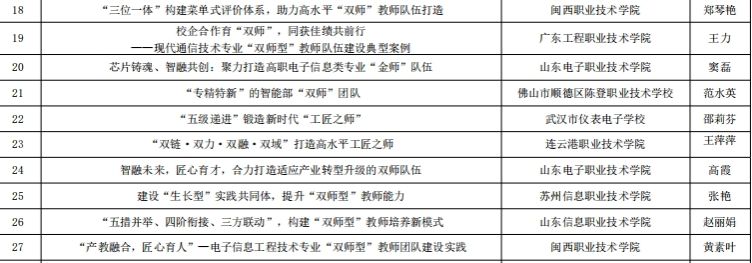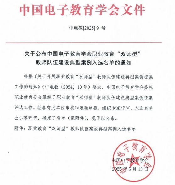 据悉,全国共有21所职业院校的33个案例入选中国电子教育学会(国家一级学会)职业教育“双师型”教师队伍建设典型案例。
